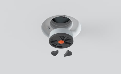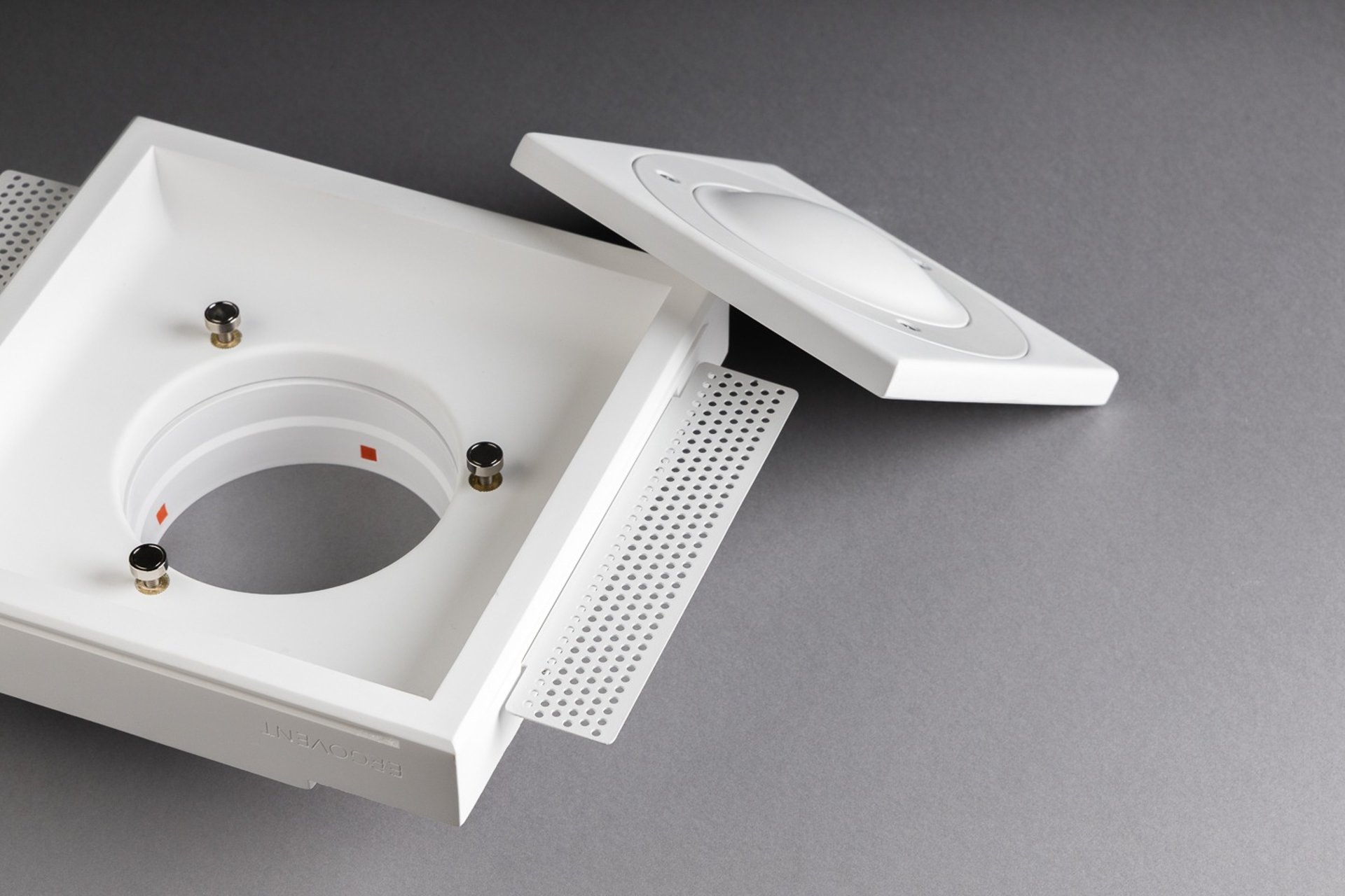 Armaturdækslet skal altid være i niveau med loftet. Hver diffusor kommer med en praktisk ERGOVENT indreguleringsventil. Hvis der er behov for yderligere at regulere luftstrømmen, anbefaler vi at bruge disse spjæld.